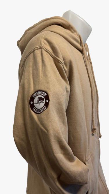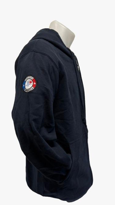 Sweat-shirt à capuche à zip intégral dissimulé par le tissu.